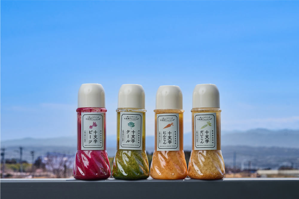 十文字ヴィレッジは、この土地の恵みを自由に盛り付けて持ち帰る、テイクアウト形式のサラダバイキング専門店です。一流シェフが監修した特製ドレッシングとともに、これまでにない「新しい干し大根の美味しさ」をお楽しみください。